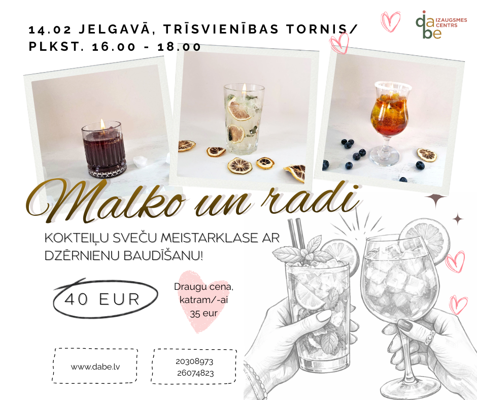 ✨Aicinām uz ekskuluzīvu kokteiļu sveču meistarklasi ar dzērienu baudīšanu 14. februārī Jelgavā!