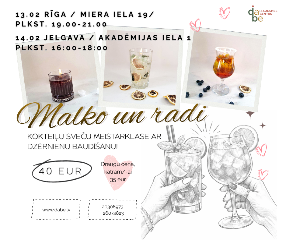 ✨Aicinām uz ekskuluzīvu kokteiļu sveču meistarklasi ar dzērienu baudīšanu 13. februārī Rīgā vai 14. februārī Jelgavā!